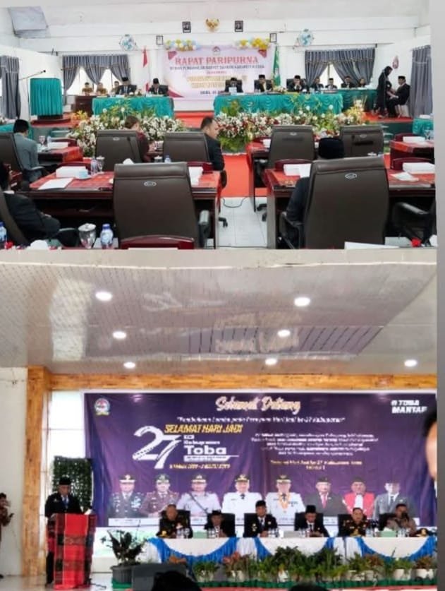Dalam agenda Rapat Paripurna HUT ke-27 Kabupaten Toba dilaksanakan ditempat gedung DPRD Kabupaten Toba, Senin, 9 Maret 2026 pagi.