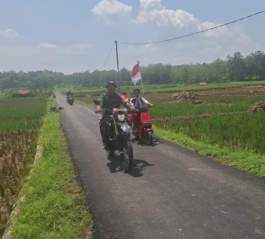 ​”Jalannya sekarang sudah bagus, Pak, seperti di kota. Pak Babinsa juga baik mau menemani kami main sepeda sambil pulang,” celetuk salah satu siswa dengan polosnya.