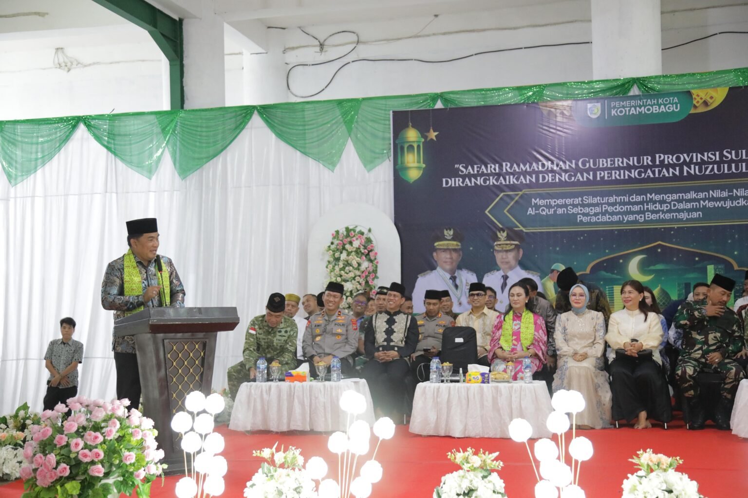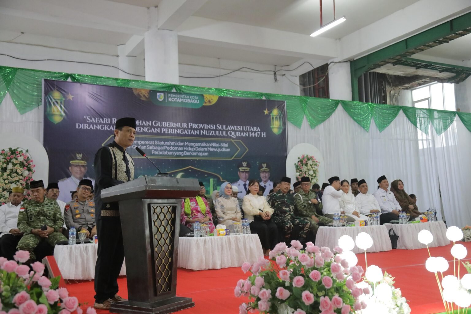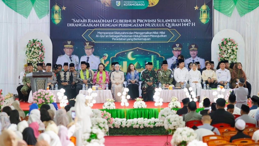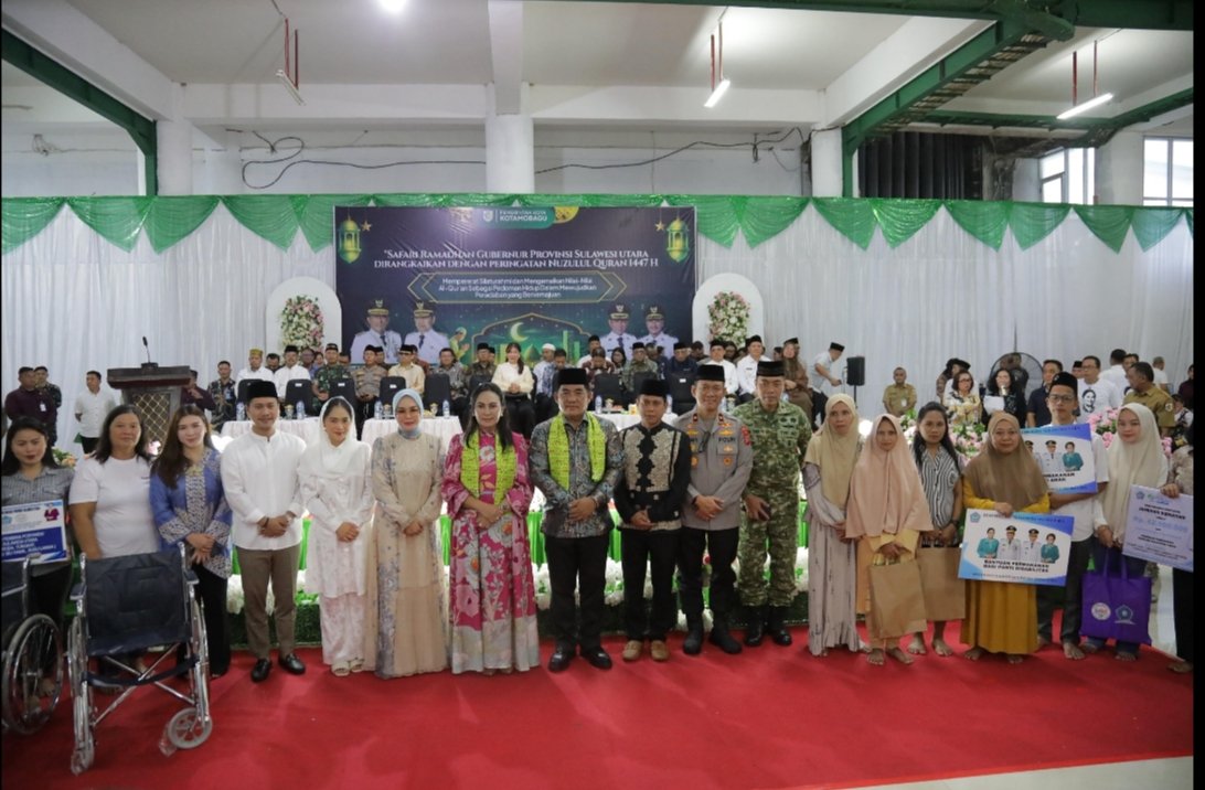 Kegiatan Safari Ramadhan Gubernur Sulawesi Utara yang dirangkaikan dengan peringatan Nuzulul Qur’an 1447 Hijriah, dihadiri Wakapolda Sulawesi Utara, Brigjen.Pol. Awi Setiyono, S.I.K., M.Hum, Danrem 131/Santiago, Brigjen. TNI. Martin Susilo Martopo Turnip, S.H., M.H., Perwakilan Forkopimda Provinsi Sulawesi Utara, Bupati Bolaang Mongondow, Yusra Alhabsyi., S.E., M.Si., Wakil Bupati Bolaang Mongondow, Dony Lumenta, para anggota Forkopimda Kota Kotamobagu, Ketua TP PKK Kota Kotamobagu, Ny. Rindah Gaib Mokoginta, S.E., M.Ec.Dev., Wakil Ketua TP PKK Kota Kotamobagu, Ny. Resty. A. Mangkat Somba, S.Sos., M.H., Anggota DPRD Provinsi Sulawesi Utara, Dhea Lumenta, para pejabat di lingkungan Pemerintah Provinsi Sulawesi Utara, Sekretaris Daerah Kota Kotamobagu, Sofyan Mokoginta, S.H., M.E., para pejabat Sipil, TNI dan Polri, para Pimpinan Instansi Vertikal, para Tokoh masyarakat, dan Masyarakat Kota Kotamobagu. (Adv)