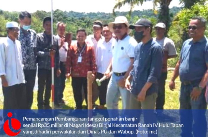 Sebagaimana yang diyakini oleh Pemerintah Kabupaten Pesisir Selatan, Sumatera Barat memastikan rencana pembangunan tanggul penahan banjir senilai Rp35 miliar di Nagari (desa) Binjai Kecamatan Ranah IV Hulu Tapan segera dimulai.