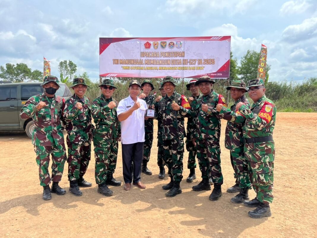BANYUASIN, investigasi.news – Dalam rangka menutup pelaksanaan TMMD ke-127 TA. 2026 di wilayah Kabupaten Banyuasin, Dansatgas TMMD 127, Letkol Inf Handoyo Yudi Prasetyo, S.E., M.H.I., M.Han., menyampaikan rasa terima kasih dan apresiasi kepada masyarakat Desa Wonosari. Sebagai bentuk penghormatan dan penghargaan atas kerjasama, kebersamaan, serta kekeluargaan yang terjalin selama satu bulan pelaksanaan TMMD, beliau menyerahkan sebuah plakat kepada Kepala Desa Wonosari, Bapak Usman Noviardi.