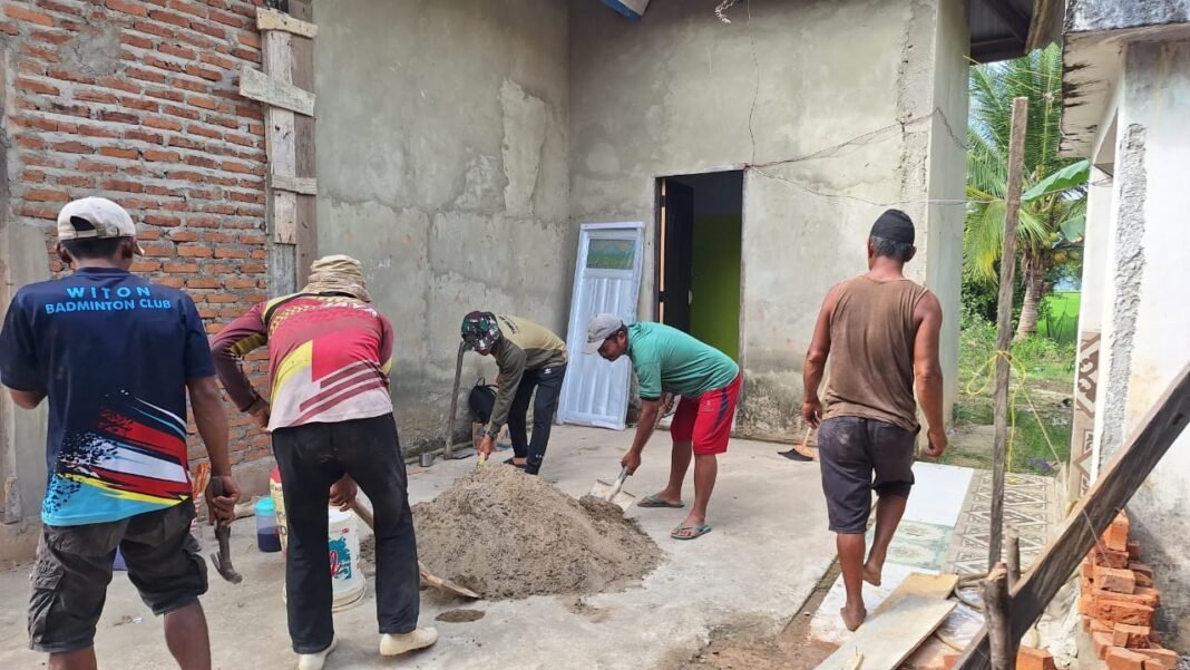 Dikatakan Dan SST Lettu Inf Iswari proses pengerjaan tersebut dilaksanakan pemasangan batu bata yang membentuk dinding yang kokoh dan kuat.