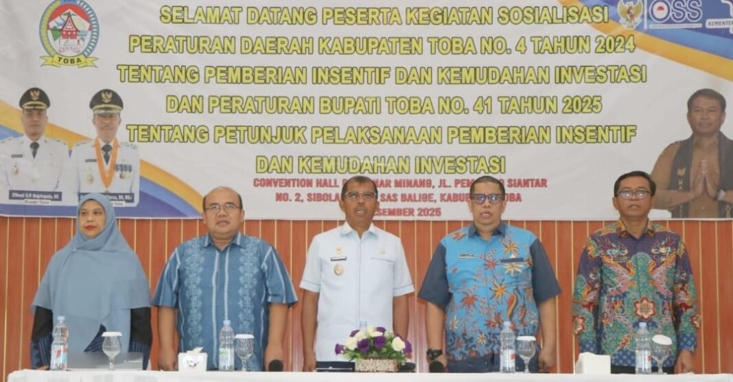 Toba,Investigasi.news — Pemerintah kabupaten Toba mengeluarkan Perda Tentang Pemberian Insentif dan Pemberian Kemudahan Investigasi, yang digelar rapat sosialisasi oleh Dinas Penanaman Modal Satu Pintu dan ketenaga kerjaan Kabupaten Toba tentang petunjuk pelaksanaan yang diadakan ditempat Convention Hall RM Sinar Minang, Balige, kamis (11/12/2025).