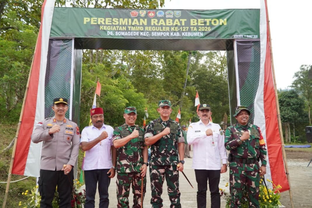 Kebumen, investigasi.news – Peresmian sasaran fisik berupa jalan rabat beton menjadi momen penting dalam upacara penutupan TMMD Reguler ke-127 Kodim 0709/Kebumen di Desa Somagede, Kecamatan Sempor, Rabu (11/03/2026). Peresmian ditandai dengan pemotongan pita sebagai simbol bahwa jalan yang dibangun melalui program TMMD tersebut kini resmi dapat dimanfaatkan oleh masyarakat.