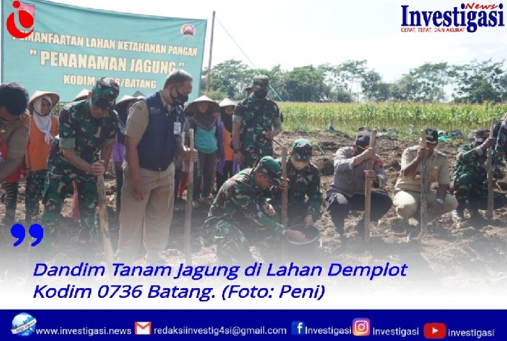 Batang, investigasi.news-Salah satu upaya dalam rangka mendukung program Pemerintah dalam bidang ketahanan pangan, Dandim beserta anggota Kodim 0736/Batang pagi tadi, Selasa (12/07/22) telah melakukan tanam jagung perdana dilahan demplot Kodim yang berada diwilayah Desa Krengseng Kecamatan Gringsing Kabupaten Batang.