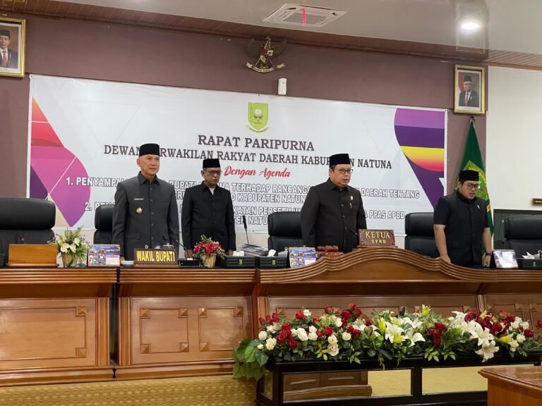 NATUNA ,Investigasi.News – Dewan Perwakilan Rakyat Daerah (DPRD) Kabupaten Natuna menggelar Rapat Paripurna dengan Agenda Penyampaian Pidato Bupati Natuna Terhadap Rancangan Peraturan Daerah Tentang Perubahan APBD Kabupaten Natuna dan Penandatanganan Nota Kesepakatan Persetujuan Bersama KUA PPAS APBD Kabupaten Natuna 2024.