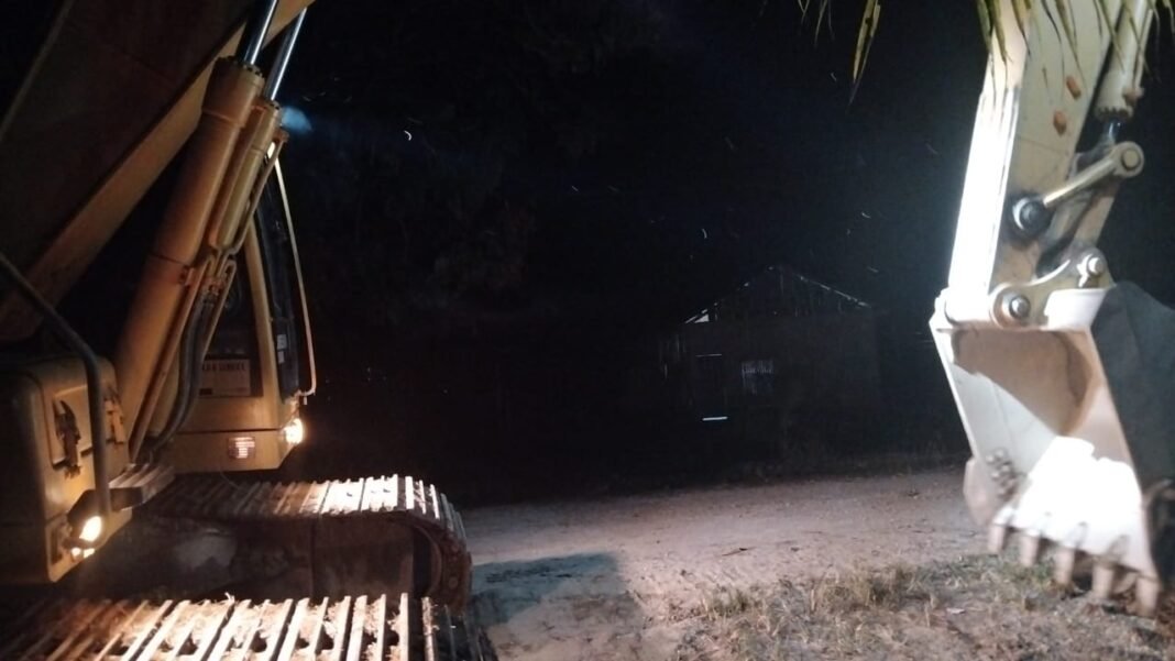 Dalam hal ini Satgas TMMD terus mengerahkan alat berat mengupayakan beroperasi hingga malam hari untuk mengumpulkan material timbunan untuk digunakan bahan timbunan jalan, di Desa Asinua Tua, Kec. Asinua, Kab. Konawe, Selasa (12/8).