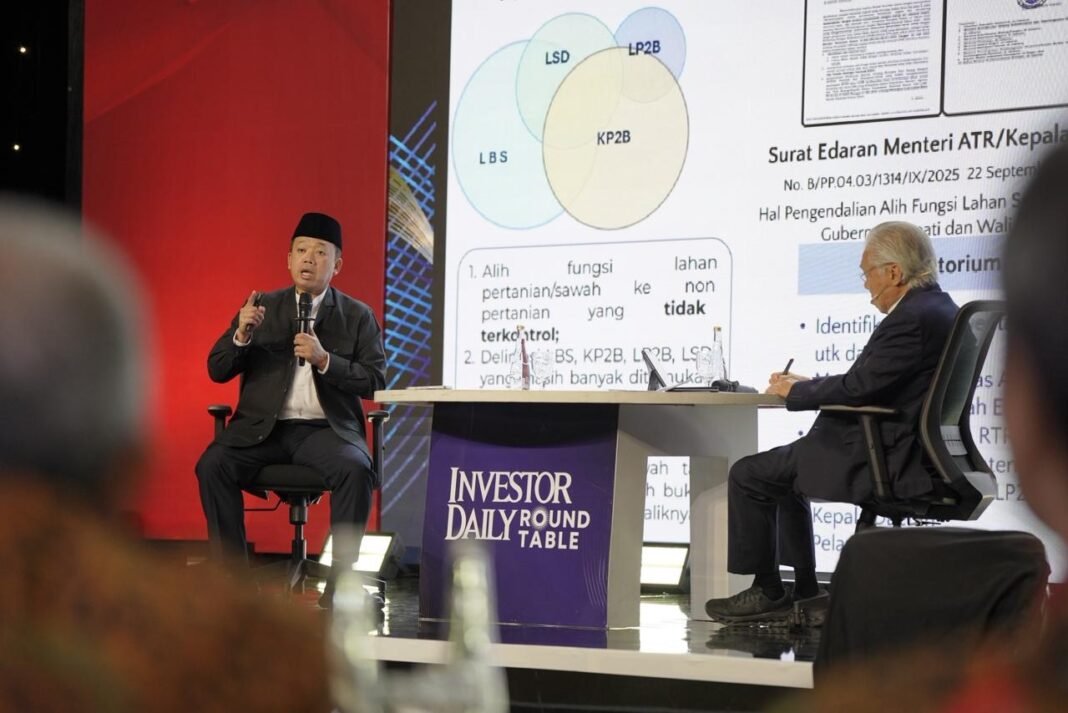 Jakarta, dutametro.com – Menteri Agraria dan Tata Ruang/Kepala Badan Pertanahan Nasional (ATR/BPN), Nusron Wahid, menyatakan bahwa upaya menjaga ketahanan pangan nasional tidak akan menghambat iklim investasi. Menurutnya, kedua agenda tersebut harus berjalan beriringan demi memastikan pembangunan dan masa depan bangsa tetap berkelanjutan. Hak itu disampaikan dia saat menjadi narasumber dalam acara Investor Daily Roundtable, yang digelar di Jakarta, Rabu (10/12/2025).