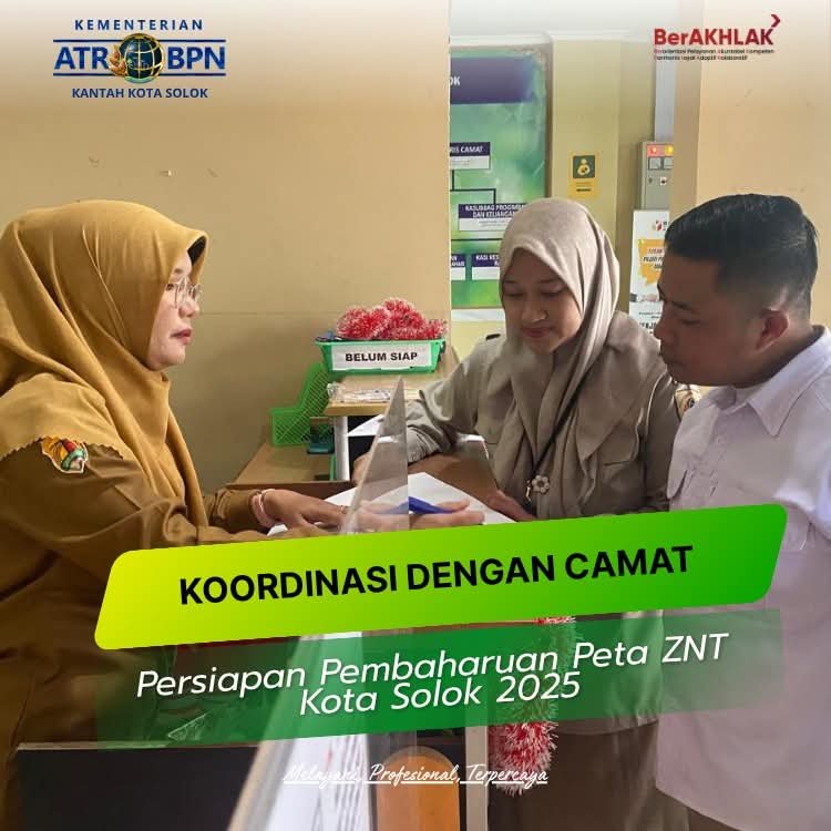 Dengan adanya koordinasi ini, diharapkan pembaharuan peta ZNT Tahun 2025 di Kota Solok dapat berjalan lancar, tepat waktu, dan menghasilkan data yang valid sebagai dasar pengambilan kebijakan di bidang pertanahan dan tata ruang. ( Wahyu)