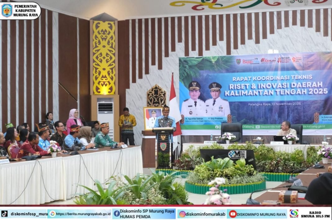 Palangka Raya, investigasi.news– Bupati Murung Raya (Mura), Heriyus melalui Wakil Bupati Mura, Rahmanto Muhidin menghadiri Rapat Koordinasi (Rakor) Teknis Riset dan Inovasi Daerah Tahun 2025 yang digelar di Aula Badan Perencanaan Pembangunan, Riset dan Inovasi Daerah (Bapperida) Provinsi Kalimantan Tengah (Kalteng), Kamis (13/11/2025).