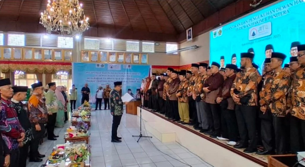 Bukittinggi, investigasi.news- Gubernur Sumatra Barat melalui Asisten Pemerintahan dan Kesejahteraan Rakyat (Aspem-Kesra) resmi melantik dan kukuhkan Dewan Hakim, Tim Teknologi Informasi (IT) Hakim, serta Panitera Musabaqah Tilawatil Qur’an (MTQ) Nasional ke-XLI Tingkat Provinsi Sumatra Barat. Proses pelantikan dewan hakim berlangsung di Istana Bung Hatta, Sabtu, 13 Desember 2025.