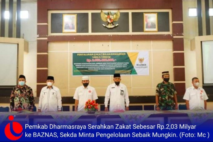 Hal tersebut disampaikan Sekda Adlisman saat mewakili Pemkab Dharmasraya menyalurkan zakat ramadhan yang diserahkan langsung oleh Bupati Dharmasraya, Sutan Riska Tuanku Kerajaan kepada Baznas Kabupaten Dharmasraya. Penyaluran ini dilaksanakan, Rabu, (13/04/22) di Auditorium kantor Bupati Dharmasraya, yang dihadiri oleh Forkopimda, Ketua MUI Dharmasraya, Kepala OPD dan undangan lainnya.