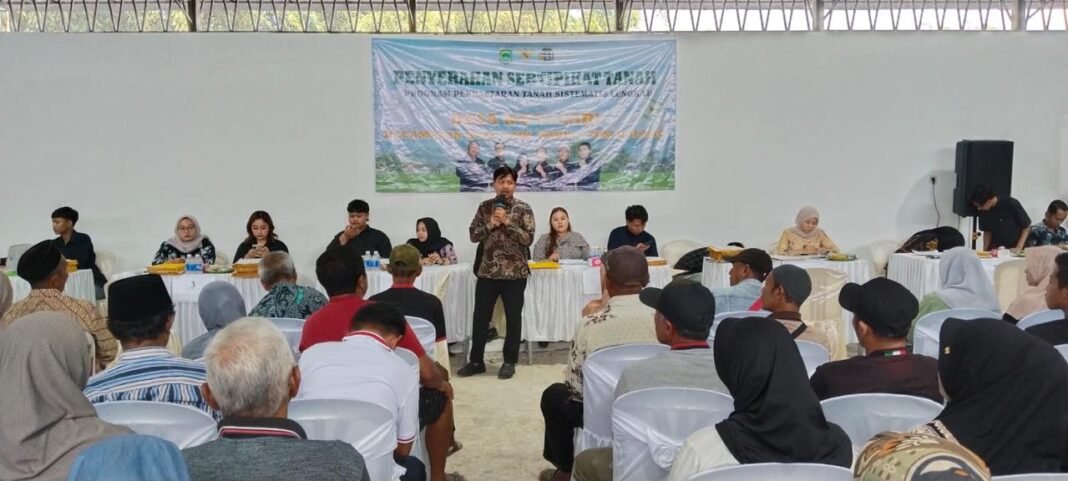 Malang— Kantor Pertanahan Kabupaten Malang melaksanakan kegiatan penyerahan sertipikat Program Pendaftaran Tanah Sistematis Lengkap (PTSL) Tahun 2025 kepada masyarakat Desa Wonosari, Kecamatan Wonosari, Kabupaten Malang (13/04).