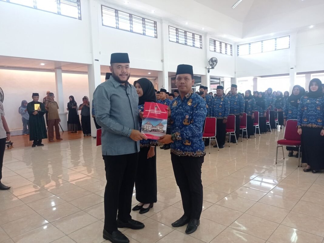 Kepala BKPSDM Kota Padang, Mairizon menyebut, pada kesempatan ini ada 8 PNS Ikatan Dinas Tahun 2024 yang diambil sumpahnya dan penyerahan SK untuk 126 Pegawai Pemerintah dengan Perjanjian Kerja (PPPK) Pemko Padang. (Taufik/Nindy/Wiki).