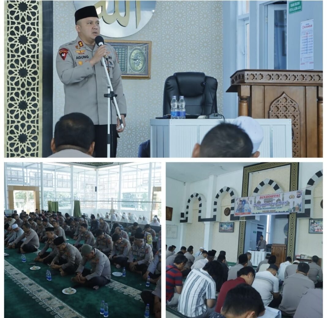 Dalam sambutannya, Kapolres Solok AKBP Agung Pranajaya, S.I.K., menyampaikan bahwa peringatan Isra’ dan Mi’raj Nabi Muhammad SAW bukan sekadar kegiatan seremonial, melainkan momentum penting bagi seluruh personel Polri untuk melakukan refleksi diri serta memperkuat hubungan spiritual dengan Allah SWT.