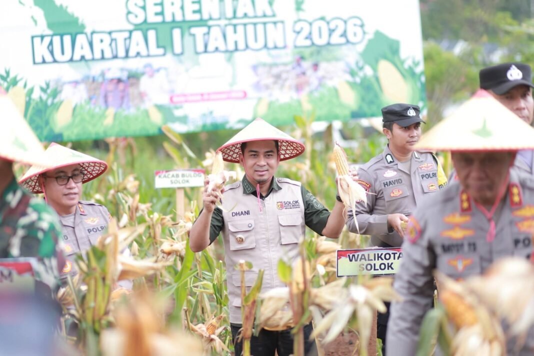 Kota Solok, investigasi.news-Wali Kota Solok, Dr. Ramadhani Kirana Putra bersama Kapolda Sumatera Barat, Irjen Pol Gatot Tri Suryanta menghadiri kegiatan panen jagung serentak kuartal I yang digelar di wilayah hukum Polres Solok Kota, Kamis kemaren.
