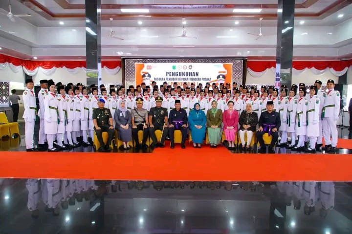 SEKAYU, Investigasi.News – Suara lantang “Siap, Bersedia!” menggema dari Pendopoan Griya Bumi Serasan Sekate, Jumat (15/8/2025) sore. Seruan kompak itu keluar dari 75 putra-putri terbaik Musi Banyuasin yang resmi dikukuhkan sebagai Pasukan Pengibar Bendera Pusaka (Paskibraka) Kabupaten Muba tahun 2025.