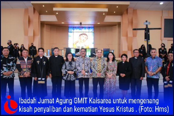 Hadir dalam Ibadah Jumat Agung jemaat GMIT Kaisarea mendampingi Walikota Kupang, Ibu Hilda Riwu Kore Manafe, Sekretaris Daerah Kota Kupang Fahrensy Priestly Funay, SE.,M.Si, Asisten administrasi umum Sekda Kota Kupang Yanuar Dally, SH.,M.Si, Asisten Pemerintahan dan kesejahteraan Rakyat Sekda Kota Kupang Jeffry E. Pelt, SH sedangkan turut mendampingi Walikota Ambon, Sekretaris Kota Ambon Drs. Agus Ririmasse, AP.,M.Si, Kepala Kejaksaan Negeri Kota Ambon Dian Frits Nalle dan sejumlah pejabat eselon dua serta staf masing-masing daerah. K