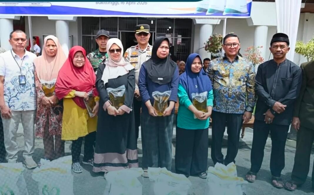 Bukittinggi — Pemerintah Kota Bukittinggi melalui Dinas Pertanian dan Pangan bersama BULOG, salurkan bantuan Cadangan Pangan Pemerintah (CPP) untuk periode Februari dan Maret tahun 2026. Bantuan tersebut diserahkan secara simbolis oleh Wali Kota Bukittinggi, Ramlan Nurmatias, di Kantor Camat ABTB, Kamis, 16 April 2026.