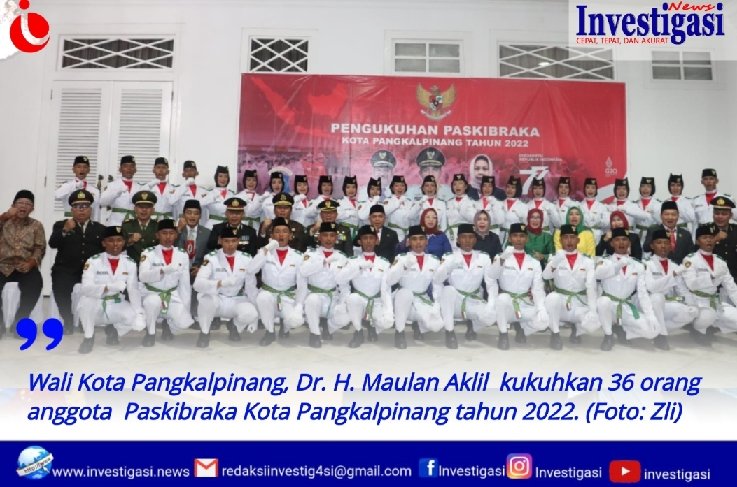 ANGKALPINANG, Investigasi.news- Wali Kota Pangkalpinang, Dr. H. Maulan Aklil (Molen) kukuhkan 36 orang anggota Paskibraka Kota Pangkalpinang tahun 2022 di Rumah Dinas Wali Kota, Senin malam (15/08/2022).