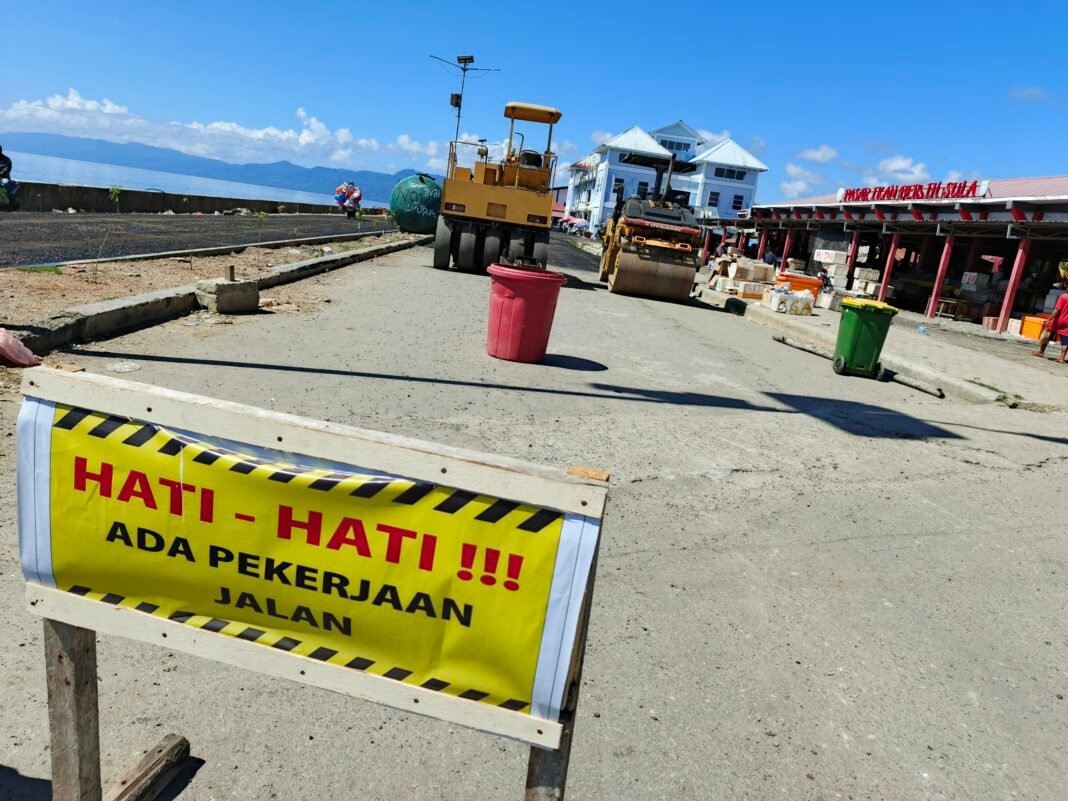 “Jadi kita kerjakan untuk yang di pasar sepanjang 1,1 KM kemudian sisanya 400 M itu nanti di jalan Bimoli, jadi sesuai volumenya menjadi 1,5 KM”, imbuh H. Adam.