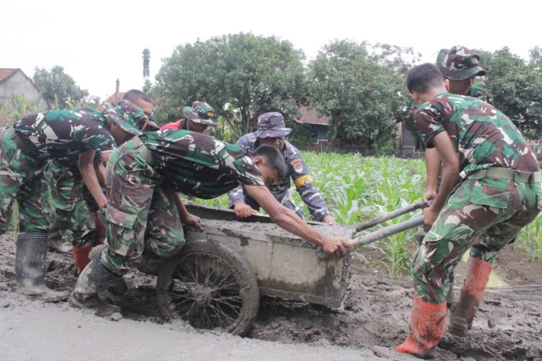BREBES, investigasi.news – Kondisi medan yang sulit dan cuaca yang menantang tidak menyurutkan semangat anggota Satgas TMMD Reguler ke-127 Kodim 0713/Brebes. Pada Selasa (16/02/2026), para prajurit terlihat berjibaku melawan tanah berlumpur dan jalanan rusak demi menuntaskan pembangunan rabat beton.