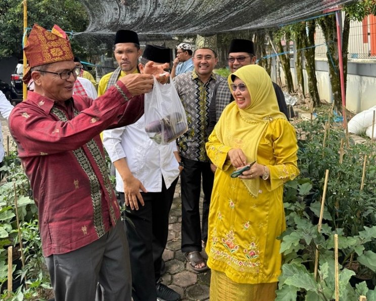 Padang, investigasi.news- Setelah selesai Upacara HUT RI sebagai bentuk upaya mendukung gerakan ketahanan pangan di lingkungan pangan Minggu (17/8) Rektor Universitas Negeri Padang (UNP) bersama jajaran pimpinan UNP melakukan panen perdana palawija tanaman terong di pekarangan rumah dinas Rektor UNP Kampus Air Tawar Padang.