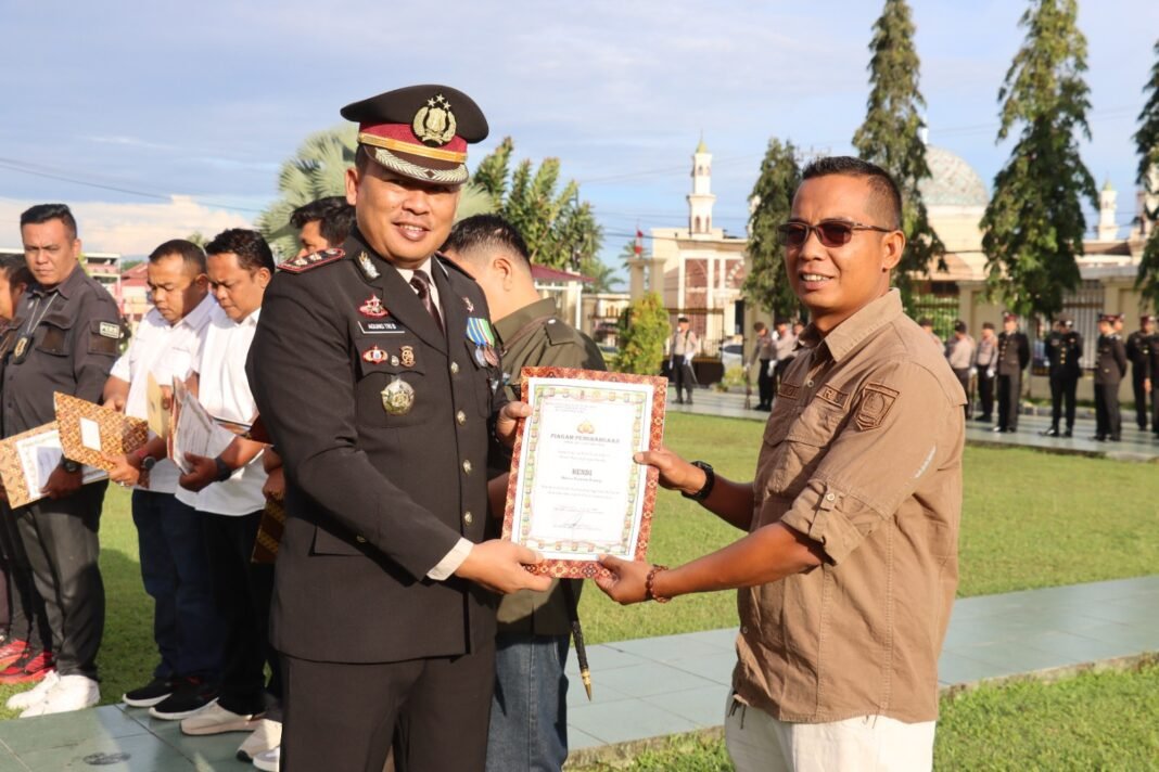 PASAMAN BARAT,investigasi.news-Sebanyak 10, orang Wartawan yang bertugas di Kabupaten Pasaman Barat (Pasbar), mendapat Piagam Penghargaan dari Kapolres Pasbar AKBP Agung Tribawanto yang juga merupakan momentum HUT Kemerdekaan RI ke- 80,di Mako Polres Pasbar Minggu (17/8) kemarin.