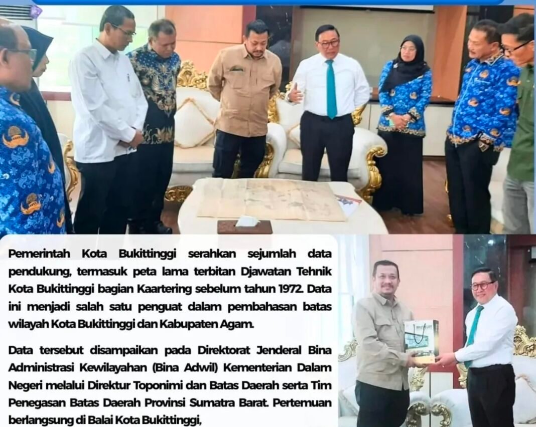 Data tersebut disampaikan pada Direktorat Jenderal Bina Administrasi Kewilayahan (Bina Adwil) Kementerian Dalam Negeri melalui Direktur Toponimi dan Batas Daerah serta Tim Penegasan Batas Daerah Provinsi Sumatra Barat. Pertemuan berlangsung di Balai Kota Bukittinggi, Rabu, 17 September 2025.