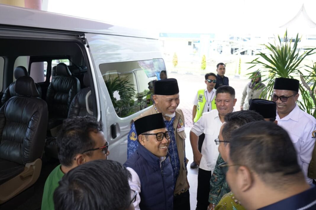 PADANG PARIAMAN, investigasi.news — Gubernur Sumatera Barat (Sumbar), Mahyeldi Ansharullah menyambut langsung kedatangan Menteri Koordinator Bidang Pemberdayaan Masyarakat Republik Indonesia, Abdul Muhaimin Iskandar dalam rangka kunjungan kerja ke Sumbar. Penyambutan berlangsung di ruang VIP Bandara Internasional Minangkabau (BIM), Kabupaten Padang Pariaman, Rabu (17/12/2025).