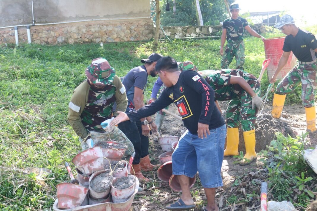 Pemandangan menarik terlihat saat seragam loreng TNI berbaur akrab dengan atribut khas Ormas Tamalaki, bersama-sama mencurahkan tenaga demi mempercepat pembangunan infrastruktur desa.