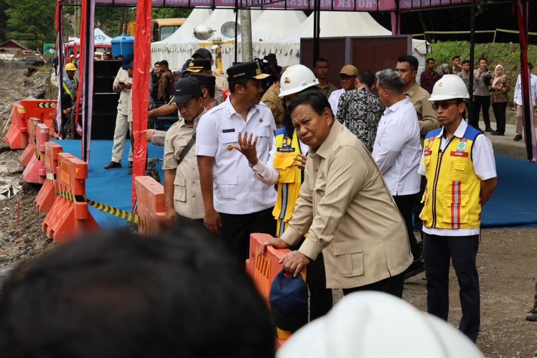 TANAH DATAR, investigasi.news — Presiden Republik Indonesia, Prabowo Subianto meninjau langsung kondisi jalan nasional yang putus total akibat bencana hidrometeorologi di kawasan Lembah Anai, Kabupaten Tanah Datar, Kamis (18/12/2025).