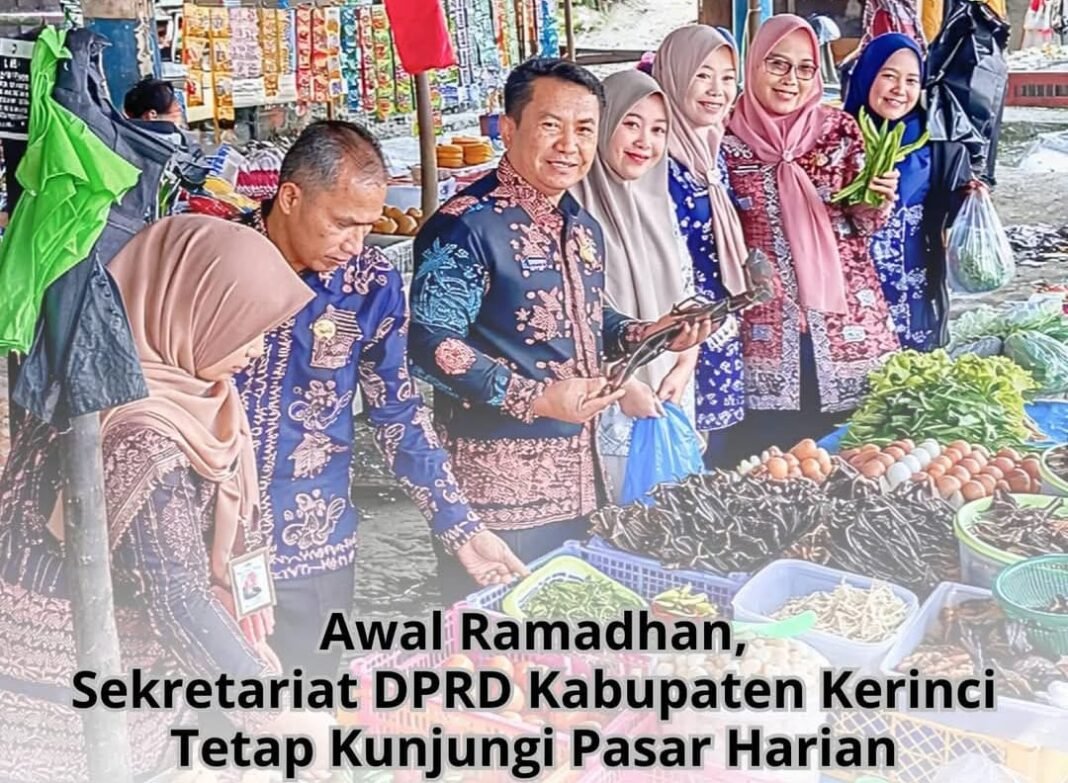 Memasuki hari pertama bulan suci Ramadhan 1447 H, Sekretariat DPRD Kabupaten Kerinci tetap melaksanakan kegiatan kunjungan ke pasar harian guna memastikan stabilitas harga dan ketersediaan bahan pokok bagi masyarakat.