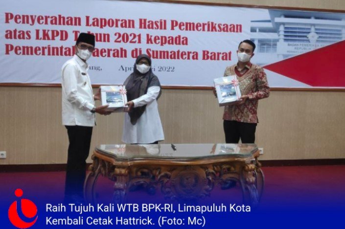 Sementara itu, pada acara penyerahan penilaian LHP atas LKPD 2021 Kepala BPK RI Perwakilan Sumatera Barat Yusnadewi menuturkan pemeriksaan yang telah dilakukan BPK atas LKPD tahun 2021 dari lima daerah yang menyerahkan laporan, antara lain, Kabupaten Limapuluh Kota, Kota Padang Panjang, Kabupaten Pesisir Selatan, Kabupaten Pasaman dan Kabupaten Sijunjung, ke lima daerah tersebut diganjar oleh BPK dengan opini Wajar Tanpa Pengecualian atas LKPD tahun anggaran 2021.