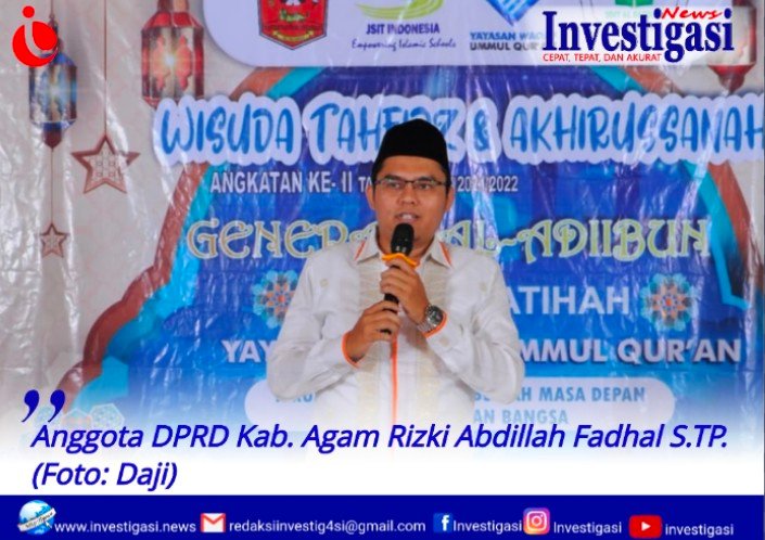 Dalam Acara wisuda dan perpisahan ini, turut hadir Anggota DPRD Kab. Agam bapak Rizki Abdillah Fadhal S.TP, serta Pembina dan Founding Father Yayasan Waqaf Ummul Qur’an.