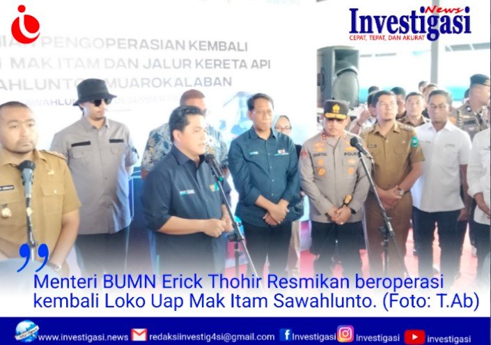 Sawahlunto, Investigasi.news – Kerjasama Badan Usaha Milik Negara (BUMN) Pupuk Indonesia, Biofarma, dan Semen Indonesia Group (SIG) didukung PT Kereta Api Indonesia (KAI) kembali mengoperasikan kereta api Loko uap Mak Itam Sawahlunto. Ini ditandai dengan peresmiannya oleh Menteri BUMN Erick Tohir, Selasa (20/12/2022).