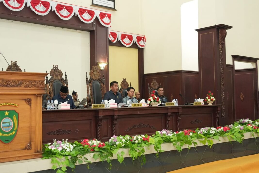 Malut, Invetigasi.News-, Dewan Perwakilan Rakyat Daerah (DPRD) Kabupaten Kepulauan Sula, malam tadi Jumat 19 Desember 2025 menggelar rapat paripurna penyampaian Rancangan Peraturan Daerah tentang Anggaran Pendapatan dan Belanja Daerah tahun anggaran 2026, penyampaian ini mencakup rencana pendapatan, rencana belanja dan rencana pembiayaan daerah dengan tetap mengacu pada program Rencana Kerja Pemerintah tahun tahun 2026, RPJMD tahun 2021-2026 dan RKPD tahun 2026, beserta KUA-PPAS tahun 2026.