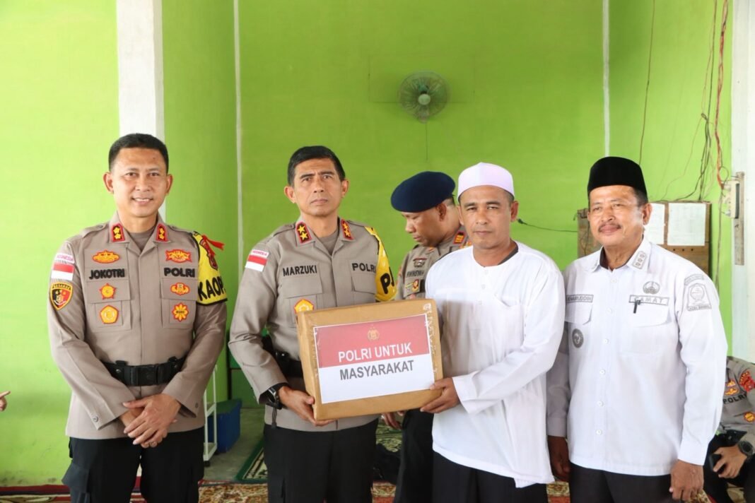 Selanjutnya, Kapolda Aceh beserta rombongan melanjutkan kegiatan ke Pondok Pesantren Darul Ulum yang berada di Desa Pulo Sarok, Kecamatan Singkil. Di lokasi tersebut, Kapolda Aceh menyalurkan bantuan berupa kain sarung, satu unit mesin air, Al-Qur’an, serta buku yasinan guna menunjang aktivitas ibadah dan kebutuhan santri.
