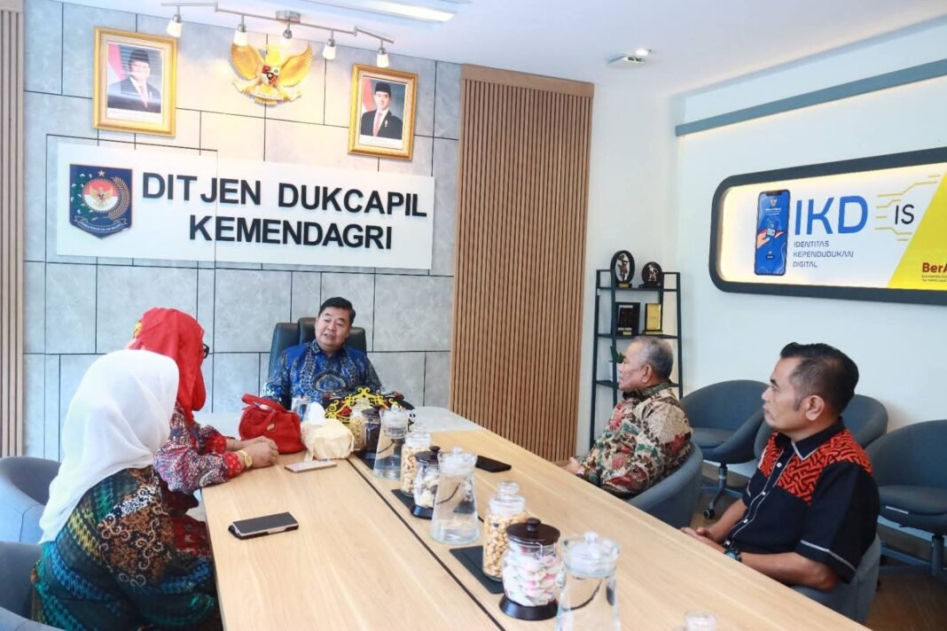 Turut hadir dalam audiensi tersebut Dr. Handayani Ningrum, S.E., M.Si, selaku Direktur Pengelolaan Informasi Administrasi Kependudukan, serta Dr. Hj. Erliani Budi Lestari, M.Si, selaku Direktur Bina Aparatur Direktorat Jenderal Kependudukan dan Pencatatan Sipil.