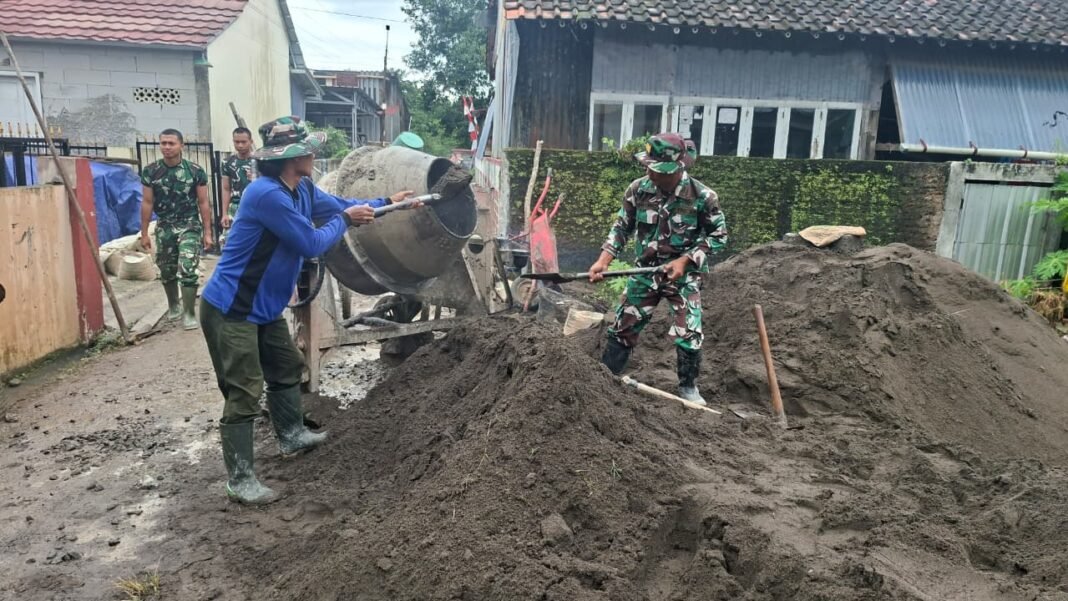 BREBES, investigasi.news – Semangat pantang menyerah ditunjukkan oleh jajaran pimpinan Satuan Tugas (Satgas) TMMD Reguler ke-127 Kodim 0713/Brebes. Pada Minggu (22/02/2026), Kapten Inf Suwarno yang menjabat sebagai Komandan Kompi (Danki) SSK Satgas TMMD, tertangkap kamera ikut berjibaku melakukan pekerjaan fisik bersama para anggotanya.