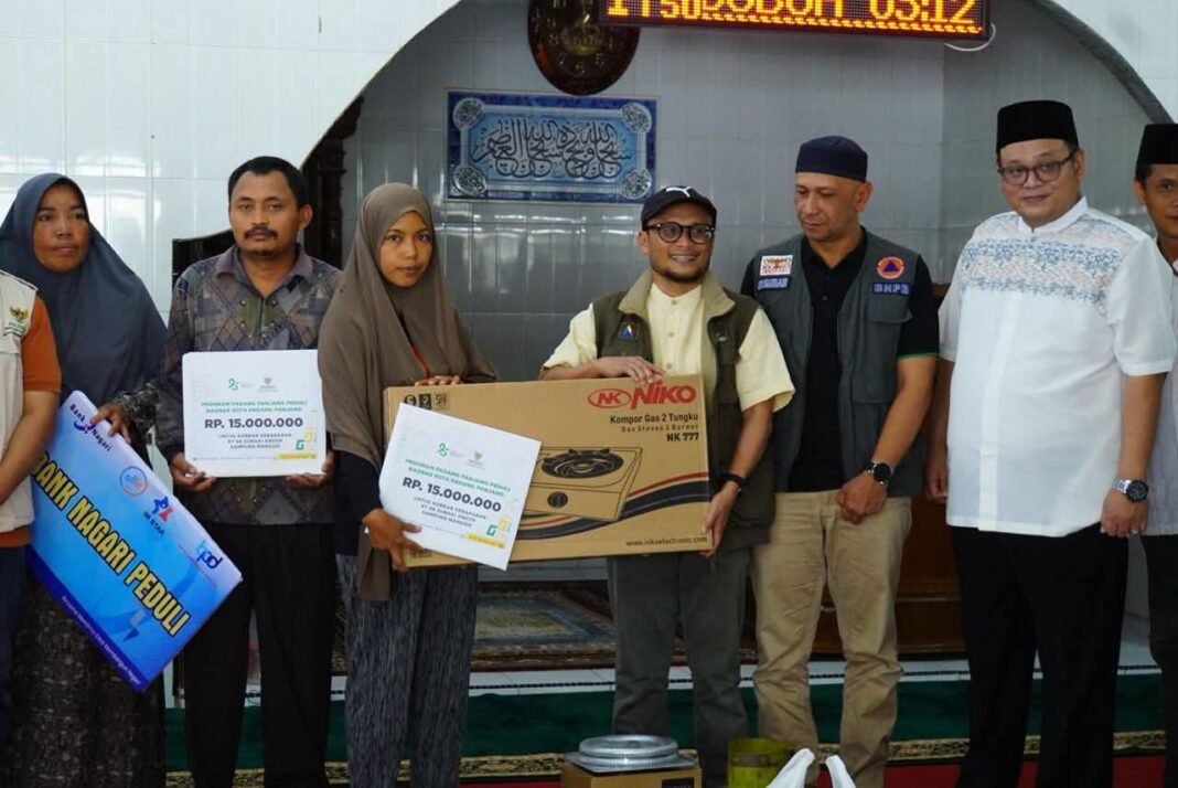 Setelah sebelumnya Pemerintah Kota menyalurkan bantuan kebutuhan dasar, bantuan lanjutan kembali diberikan bersama Baznas dan Bank Nagari, Sabtu (21/2/2026), di lokasi pengungsian sementara di Masjid Nurul Khairat.