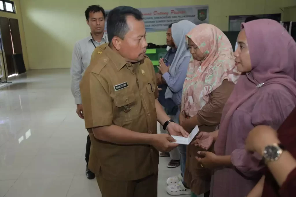 Muhilli Lubis didampingi Kadis Koperasi, Perdagangan dan Perindustrian Kabupaten Asahan, Mewakil Kepala BANK SUMUT Cabang Kisaran dan Ketua Imtaq Kabupaten Asahan.