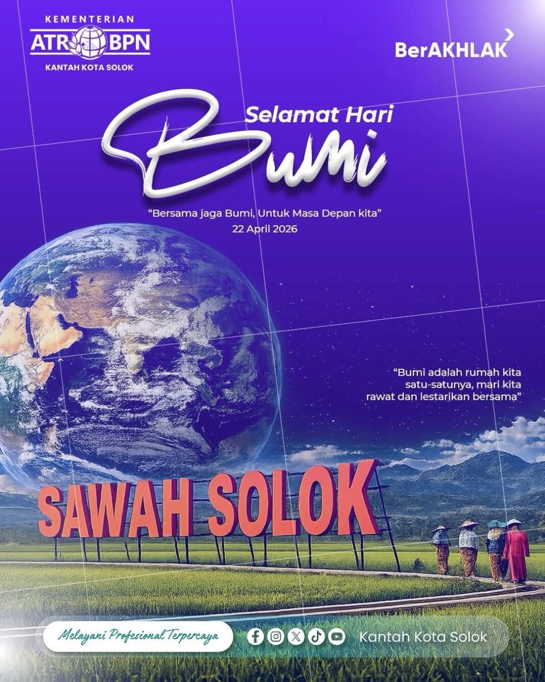 Kota Solok- Tanah bukan sekadar aset, melainkan warisan yang harus kita jaga kelestariannya. Di Hari Bumi ini, Kantor Pertanahan Kota Solok mengajak seluruh masyarakat untuk lebih bijak dalam mengelola dan menjaga lingkungan di atas tanah kita sendiri.