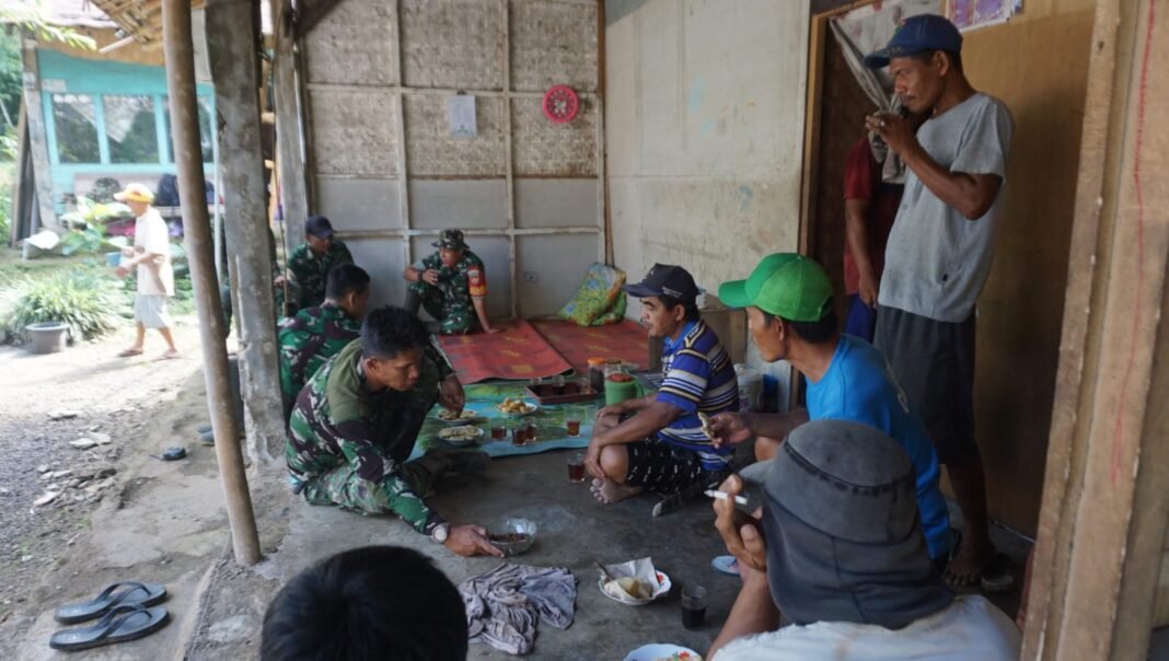 PURBALINGGA — Suasana penuh keakraban tampak di, teras rumah sederhana milik Kasniyah, warga Dusun 3 Karanggude, Desa Krangean, Kecamatan Kertanegara. Sejumlah anggota TNI bersama warga duduk lesehan, berbincang santai sambil menikmati hidangan sederhana. Di tengah obrolan ringan itu, terselip semangat kebersamaan yang menjadi awal dari sebuah perubahan.