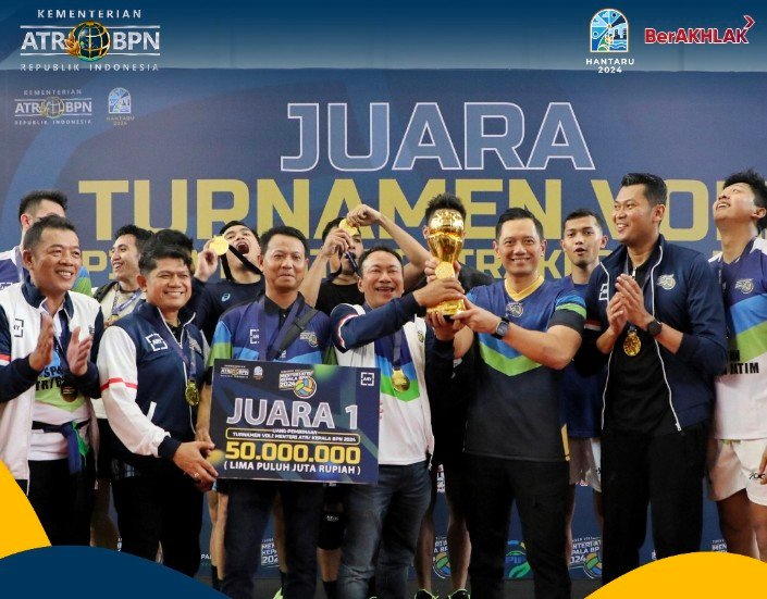Disaksikan Presiden ke-6 Indonesia dan Menteri AHY, Juara Voli Menteri ATR/Kepala BPN Cup 2024 Diraih oleh Kanwil BPN Provinsi Jawa Timur