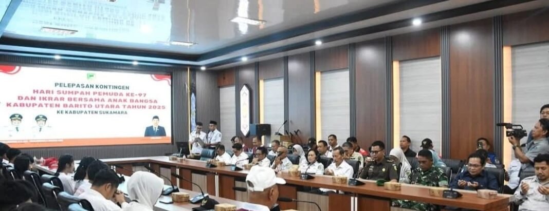Muara Teweh, investigasi. News– Pemerintah Kabupaten Barito Utara melalui Badan Kesatuan Bangsa dan Politik (Bakesbangpol) menggelar acara pelepasan peserta Upacara Peringatan Hari Sumpah Pemuda (HSP) ke-97 dan Ikrar Bersama Anak Bangsa (IKBAB) tingkat Provinsi Kalimantan Tengah. Kegiatan berlangsung di Ruang Rapat A Setda Lantai I dan diikuti dengan penuh semangat kebangsaan.