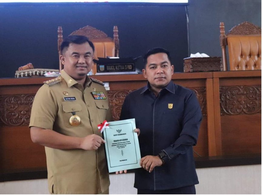 Dharmasraya, investigasi.news– Pimpinan DPRD Dharmasraya Ade Sudarman Anwar, menerima nota penjelasan Bupati Dharmasraya, tentang Anggaran Pendapat dan Belanja Daerah (APBD) Kabupaten Dharmasraya Tahun Anggaran 2025. Pembahasan ini dimulai dengan penyampaian Nota Penjelasan Bupati terkait Ranperda APBD yang disampaikan langsung oleh Bupati Dharmasraya Sutan Riska Tuanku Kerajaan.