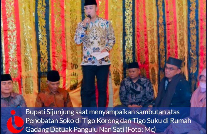 Sijunjung, Investigasi.news – Bupati Sijunjung Benny Dwifa Yuswir menyaksikan Penobatan Soko di Tigo Korong dan Tigo Suku di Rumah Gadang Datuak Pangulu Nan Sati, di Jorong Pantai Cermin, Nagari Palangki, Kecamatan IV Nagari, Minggu (23/1/22).