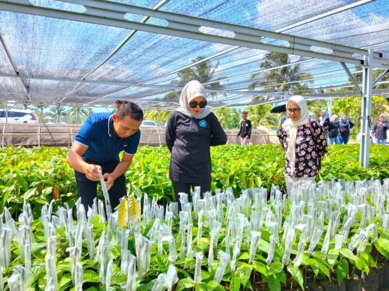 Rombongan meninjau langsung kondisi kebun sekaligus proses pembibitan kakao yang dikembangkan secara mandiri oleh generasi muda daerah.