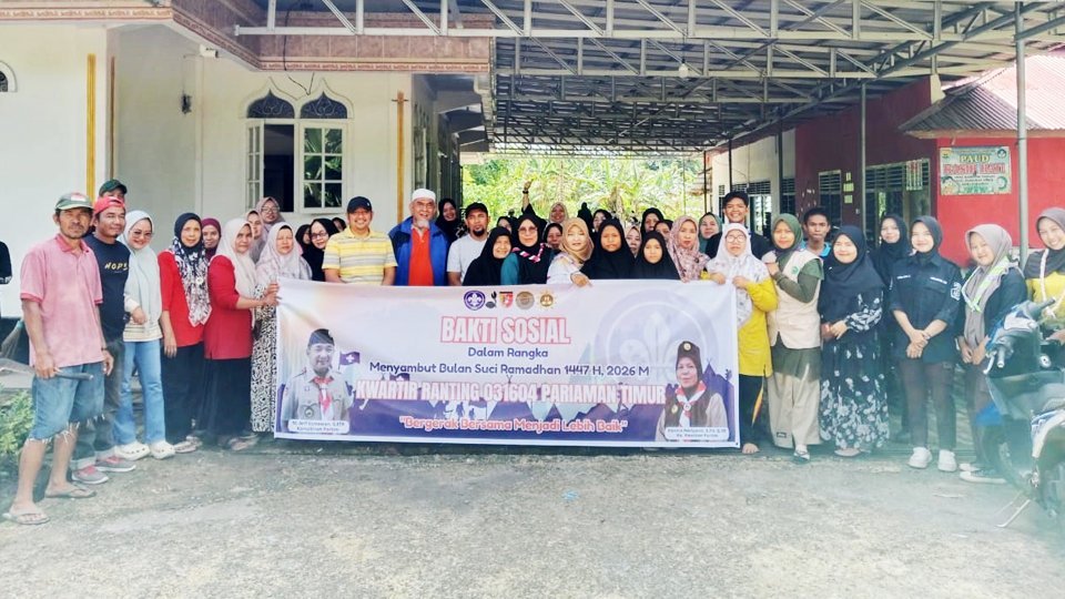 Kota Pariaman —Semangat gotong royong kembali digaungkan oleh jajaran Pramuka di bawah naungan Kwartir Ranting (Kwarran) 031604 Pariaman Timur, Kota Pariaman. Kali ini, Kwarran Pariaman Timur melaksanakan aksi nyata berupa kegiatan Bakti Sosial (Baksos) yang berfokus di Mushala Rumbio, Desa Kampung Tangah, Sabtu (14/2/2026).
